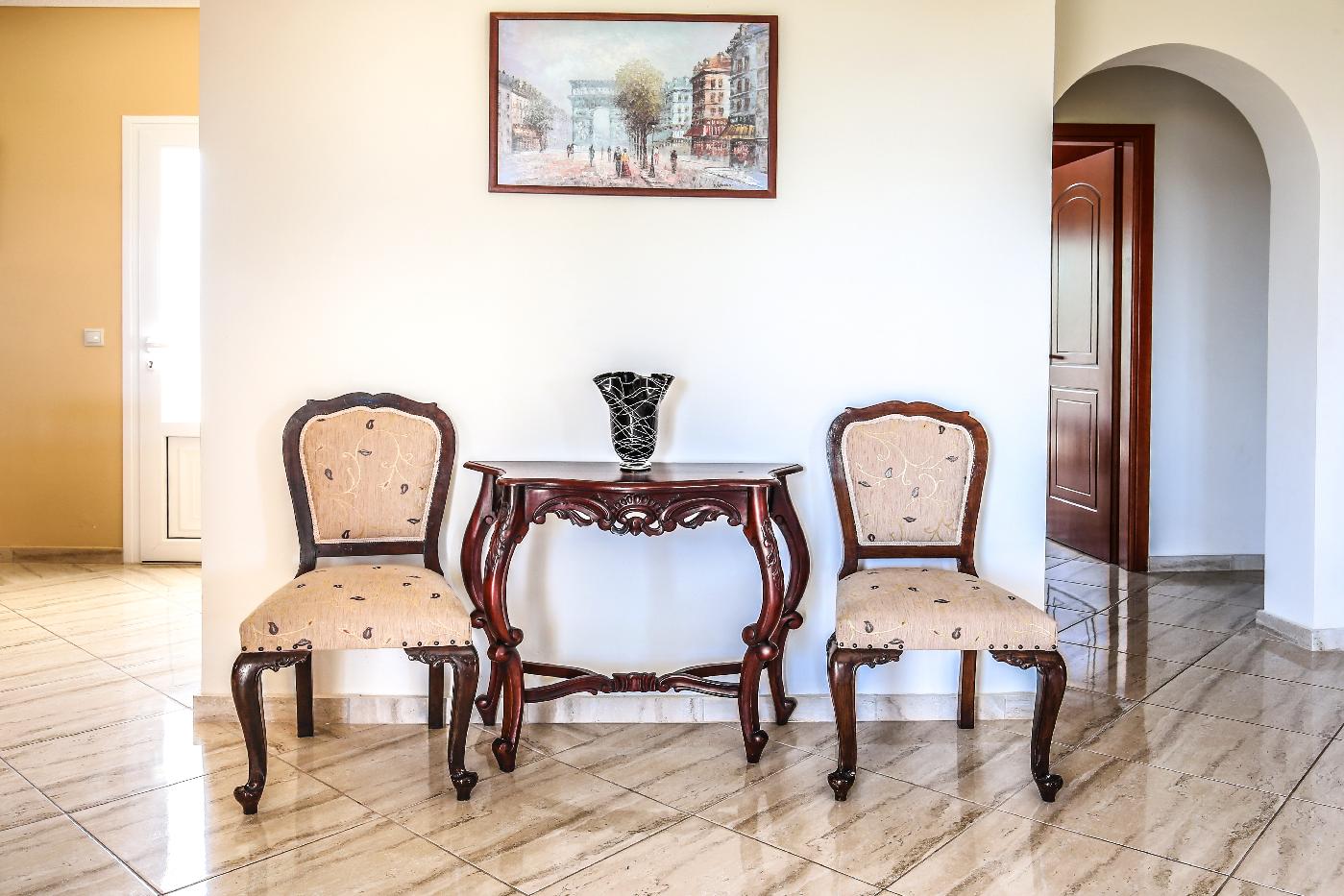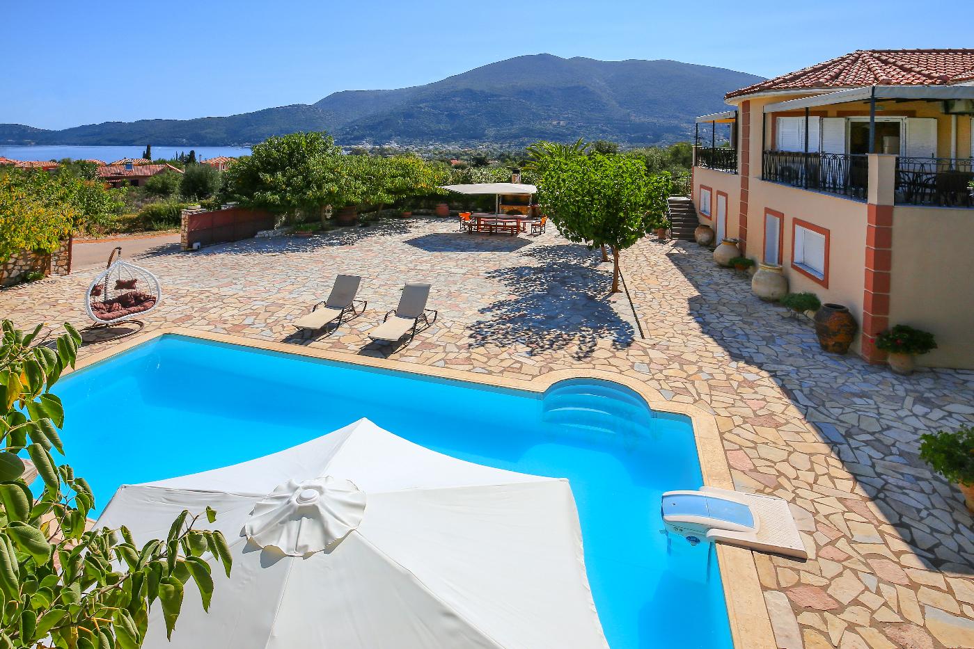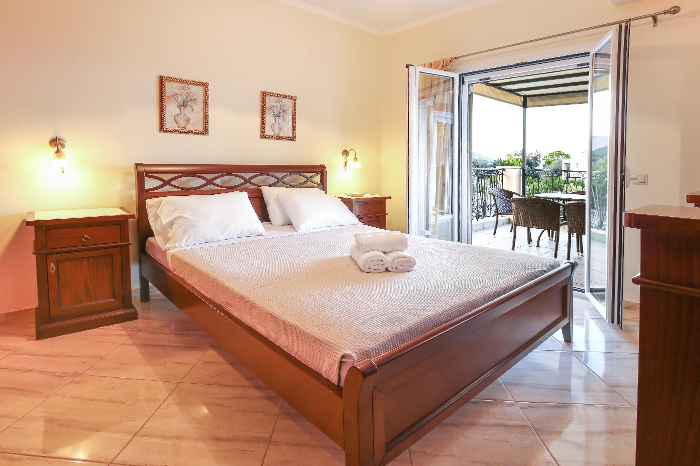 The top floor of the villa consists of 3 spacious bedrooms, living room, dining room & fully equipped kitchen. Swapping panoramic views of the Ionian Sea! The ground floor of the villa which is only connected by an exterior staircase consists of two separate apartments where each apartment has its own private entrance with two spacious bedrooms, living room, dining room, and fully equipped kitchen.